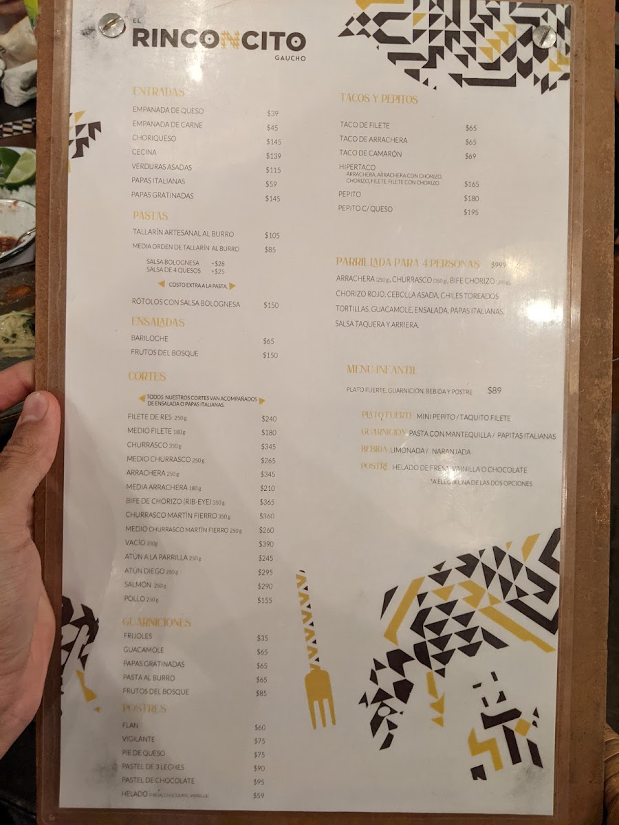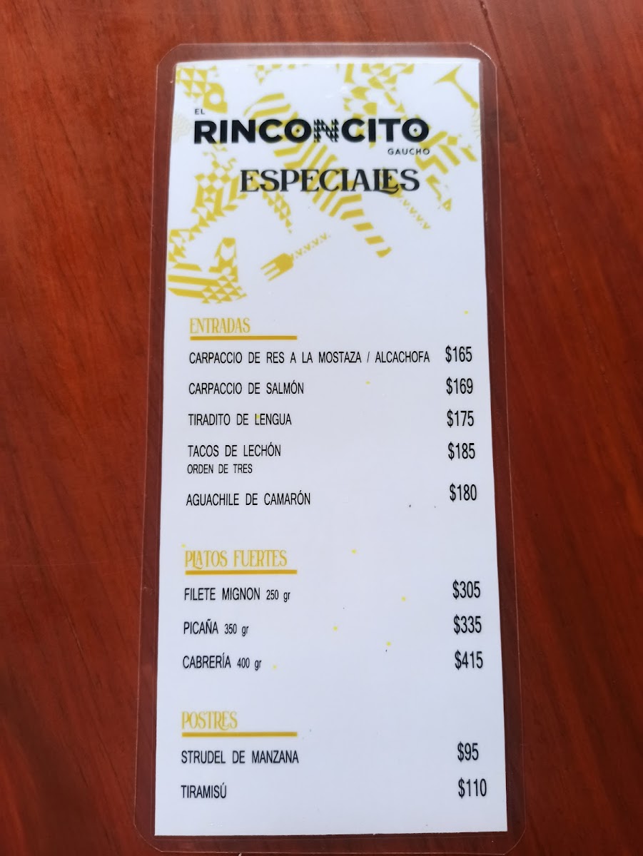 Introducing the Menu at EL RINCONCITO GAUCHO VALTIERRA